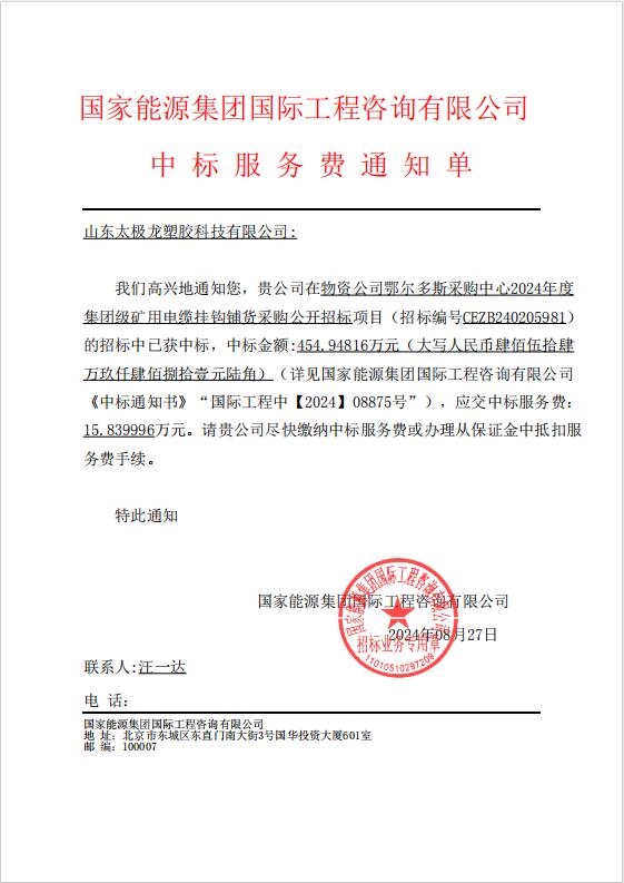 能源集團物資公司鄂爾多斯采購中心2024年度集團級礦用電纜掛鉤項目中標通知